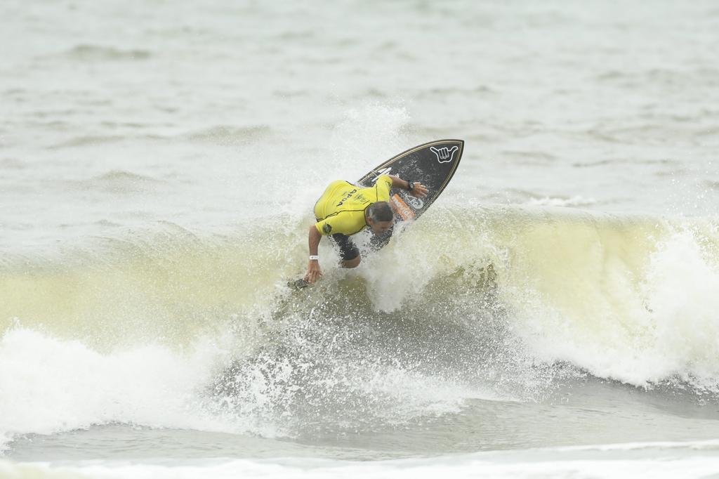 Após a primeira fase da categoria 40+, rolou a dos surfistas que já completaram 50 anos. Nessa quem brilhou foi um dos maiores ídolos do surfe brasileiro, Fábio Gouveia. O paraibano mora em Floripa há muitos anos e fez o maior placar do CBSurf Itapoá Master no primeiro dia. Com a nota 7,00 na melhor onda que surfou, Fabinho derrotou por 12,40 pontos os cariocas Duda Tedesco, Gutemberg Goulart e o alagoano Fred Vilela.