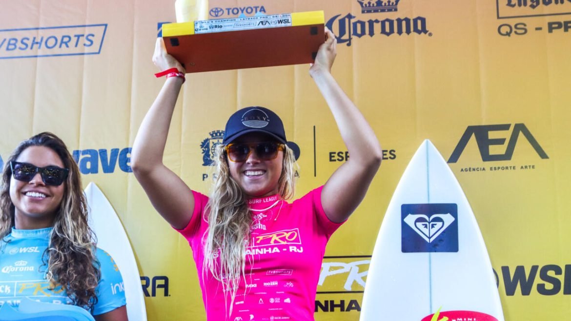 Laura RauppLaura Raupp conseguiu sua maior nota na final nas direitas da Prainha – WSL / LUIZ BLANCOLaura Raupp fica mais ativa e logo acha uma direita boa, para combinar duas manobras gigantes de frontside, abrindo grandes leques de água, que arrancaram nota 8,83 dos juízes. Tainá ainda surfa muito forte outra esquerda, com um batidão reto de backside e mais duas rasgadas, ganhando 7,50. Ela passou a precisar de 8,27 para conquistar o seu segundo QS no ano, mas não conseguiu reverter o placar, encerrado em 15,76 a 13,53 pontos. Laura Raupp festejou bastante o título, especialmente por ser novamente em uma etapa do LayBack Pro, promovida pelo seu patrocinador.