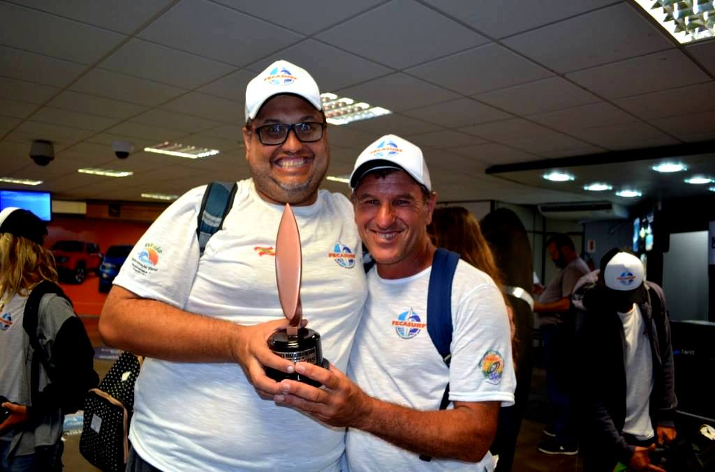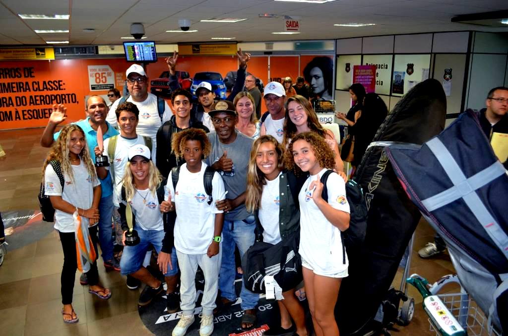 Por volta das 10h30min, desembarcaram no Aeroporto Internacional Hercílio Luz, em Florianópolis, retornando da primeira etapa do CBSurf Tour 2017, no estado do Pará, no extremo Nordeste Brasileiro, a equipe campeã da abertura do Circuito Brasileiro de Surf Amador 2017.