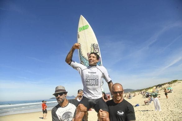 NOVOS RECORDES – No domingo as ondas estavam pequenas, com as séries demorando a entrar, mas a Praia da Joaquina seguiu mandando boas esquerdas para fazer várias manobras de borda e aéreas também. O campeão, Alex Ribeiro, comprovou isso registrando novos recordes no Floripa Pro Etapa Joaquina. Ele bateu todas as marcas do paranaense Lucas Catapam, aumentando o maior somatório de 16,67 para 16,77 pontos nas semifinais e a maior nota de 9,00 para 9,07, que garantiu a vitória na final paulista com Gabriel Klaussner.
